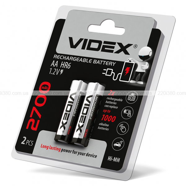 Нікель-метал-гідридні (Ni-MH) акумулятори VIDEX є високоякісним джерелом живлення і мають тривалий строк служби. Цей тип акумуляторів використовується в переносних електроприладах і інструментах. З переваг даного типу акумуляторів необхідно відзначити швидкий заряд і тривалий строк служби. Наявність на упаковці позначення "READY FOR USЕ", говорить про готовність акумулятора до роботи відразу після розпакування. У випадку відсутності такого позначення, перед початком використання акумулятор потрібно зарядити. Застосовуються для будь-яких типів навантаження.