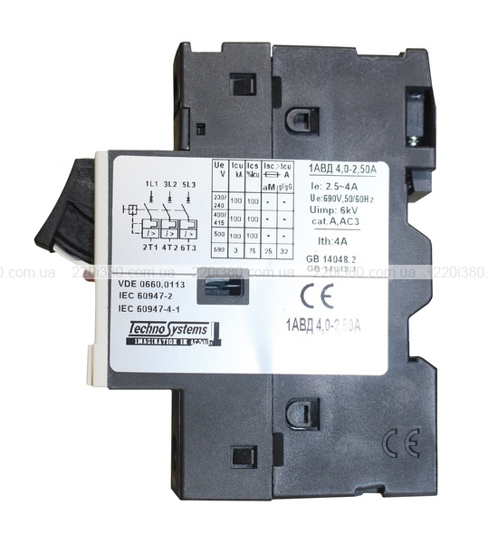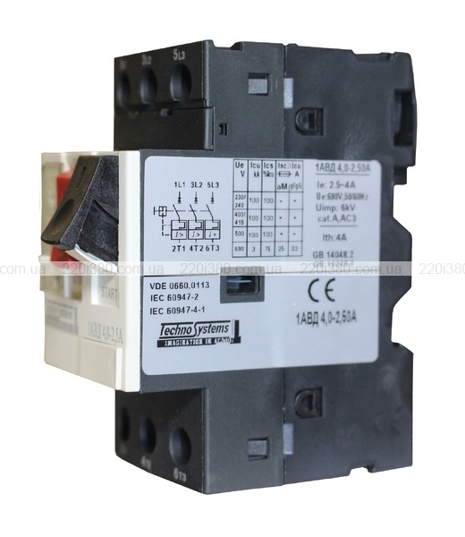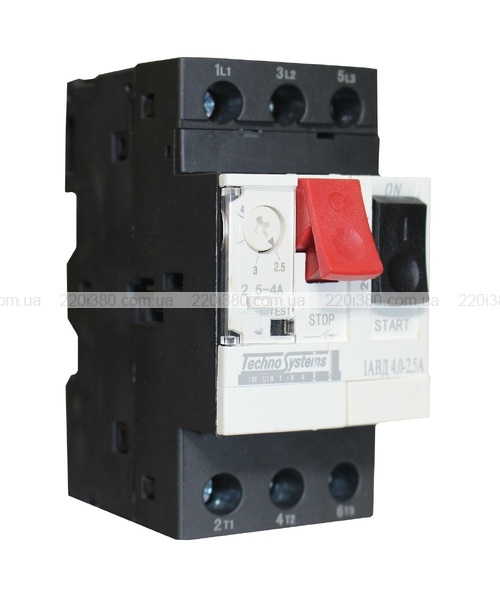 Автоматичний вимикач 1АВД4,0-2,5А для захисту двигуна. (220V 0,75kW / 400V 1,5kW) TNSy