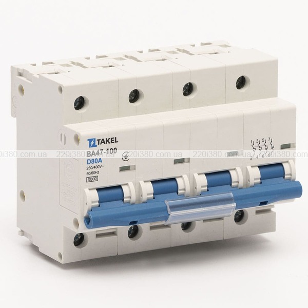 Автоматичний вимикач ВА47-100-D 10кА 4Р 80А TAKEL
