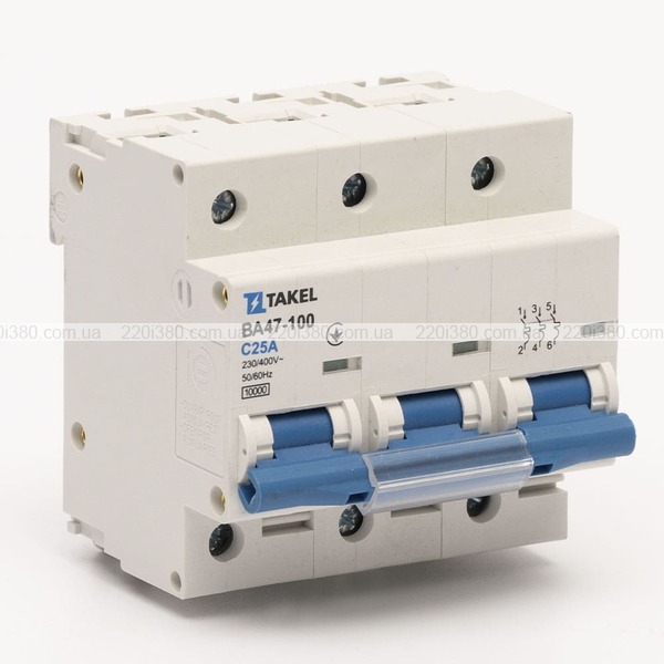 Автоматичний вимикач ВА47-100-С 10кА 3Р 25А TAKEL