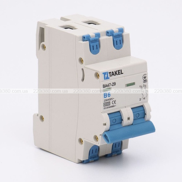 Автоматичний вимикач ВА47-29-В 2Р 4.5кА 6А TAKEL
