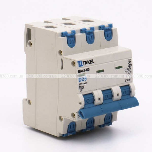 Автоматичний вимикач ВА47-60-D 3Р 6кА 25А TAKEL