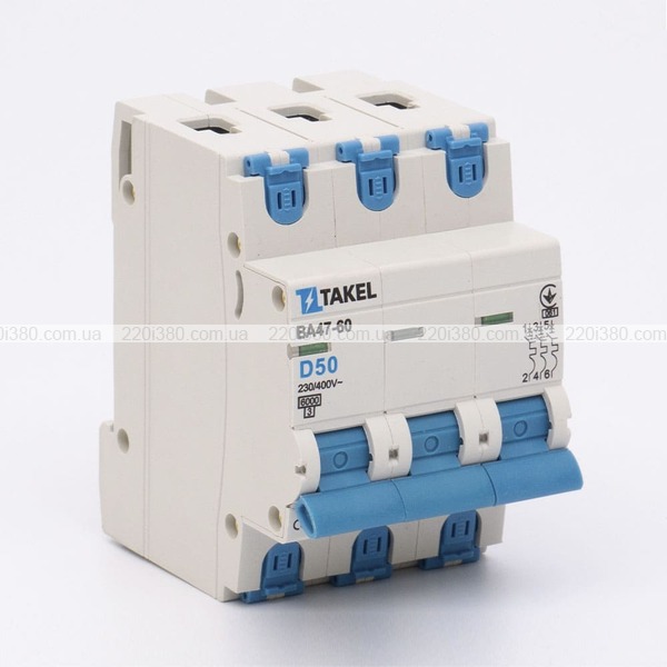 Автоматичний вимикач ВА47-60-D 3Р 6кА 50А TAKEL