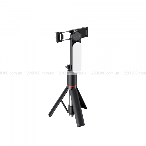 Сучасний тримач для телефону дозволяє здійснювати більш зручно фото/відео зйомку завдяки бездротовому керуванню. Положення гаджета у тримачі регулюється на 360°, а сама конструкція тримача телескопічна. Для стабільної фіксації у вертикальному стані трипод ставиться на підлогу або іншу рівну поверхню на три ніжки, які необхідно видвинути для стійкості після чого можете обирати необхідну вам висоту. Конструкція тримача дозволяє фіксувати гаджети з різною діагоналлю, ширина змінюється від 63мм до 93мм. Освітлення має декілька режимів роботи: мінімальна яскравість (м'яке світло), середня яскравість, максимальна яскравість, а також режим стробоскопа. Для активації режиму стробоскопа необхідно здійснити подвійне натискання на кнопку On/Off.