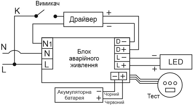 Схема підключення БАП EPS5 10W 2/3H bat: 11,1V 2,2A: