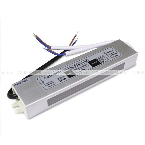Даний блок живлення має потужність 60 Вт, розрахований на пасивне охолодження і виконаний у вигляді вузького блоку. Вхідна напруга може коливатися від 170 у до 240 В, а вихідна становить 12 В при силі струму у 5 А. Корпус виробу виготовлений з металу, клас захисту – IP67, що дозволяє вважати його герметичним. Блок живлення може використовуватися для організації підсвічування за допомогою світлодіодних стрічок, лінійок та інших пристроїв з низьким вхідним вольтажем.