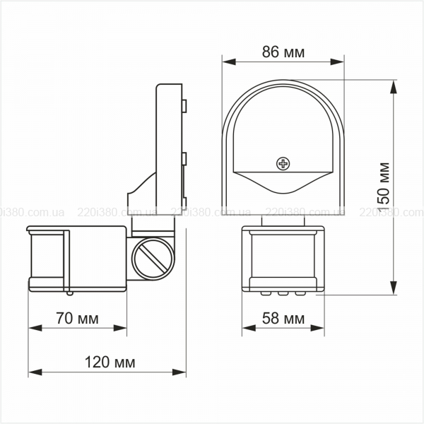 Інфрачервоний датчик руху та освітлення дозволяє керувати системою освітлення та фіксує переміщення об'єктів. Датчик автоматично вмикає та вимикає освітлення у приміщенні в залежності від виявлення руху у своєму полі дії. Широко використовується для освітлення промислових, складських, паркових, прибудинкових територій, зон відпочинку, доріг. Рекомендована висота встановлення-1.8-2.5м.