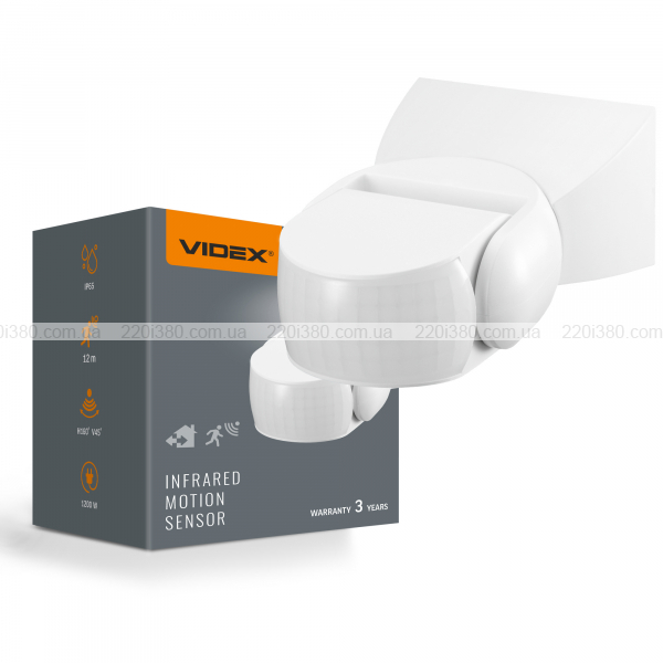 Датчик руху та освітленості VIDEX VL-SPW15W 220V 1200W IP65 інфрачервоний білий
