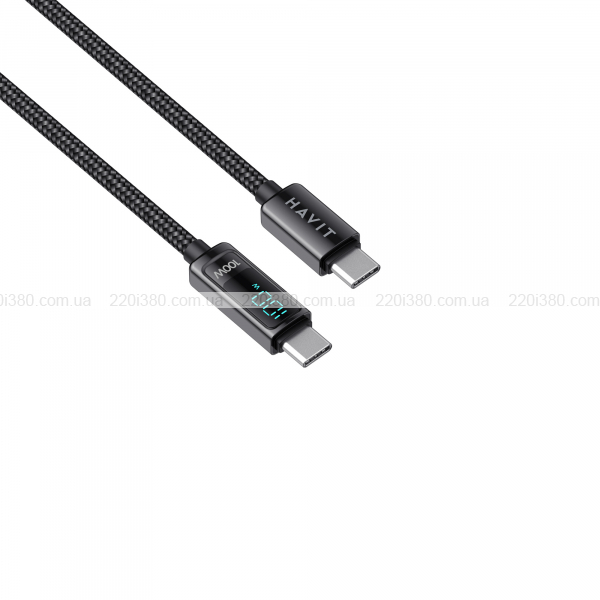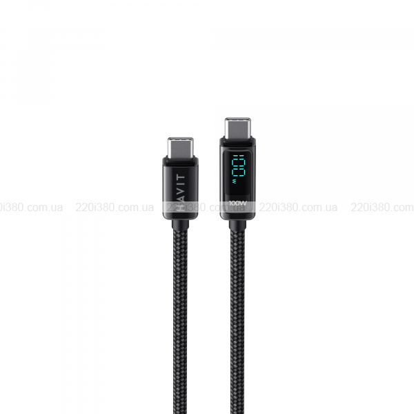 Кабель Type-C to Type-C HAVIT HV-CB6247 PD100W 5A 2м з LED екраном