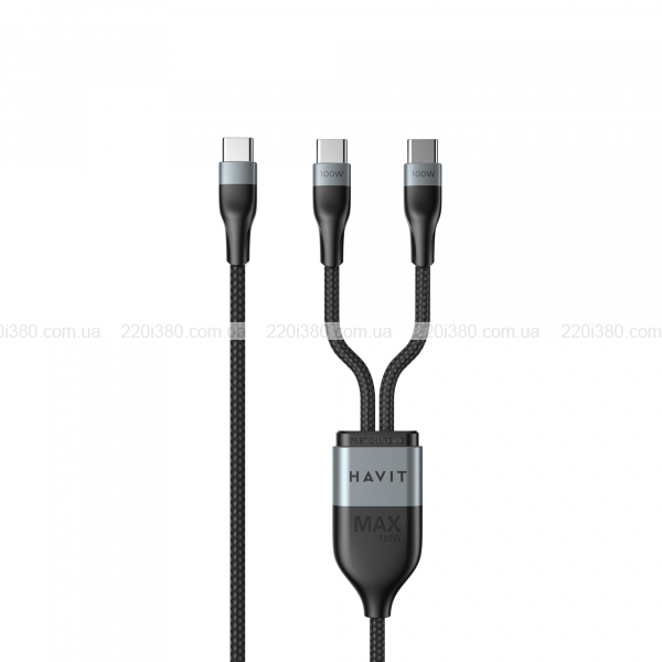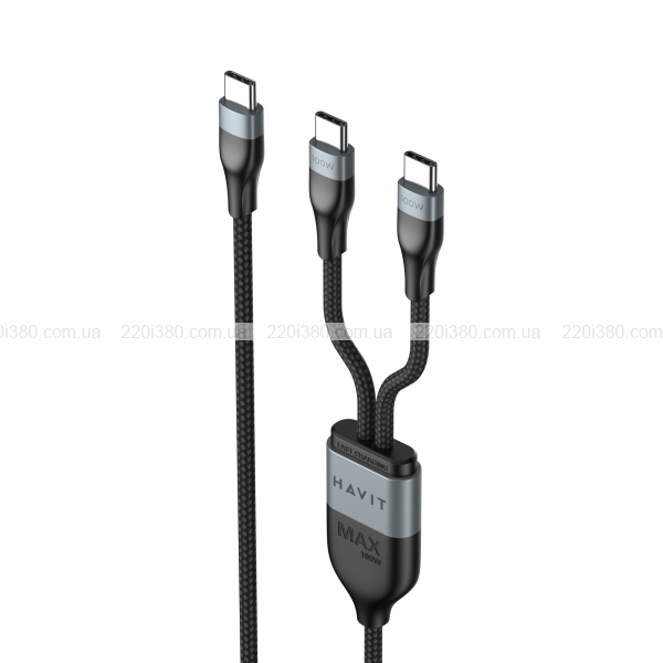 Кабель USB-C - USB-C + USB-C HAVIT HV-CB6325 PD100W 5A 1.2м