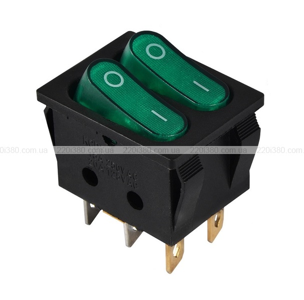 Щиро вітаємо з наступаючим Новим роком!!!KCD2-5-2101N G+R/B 220V Перемикач 2 клав, зелений з підсвічуванням TNSy