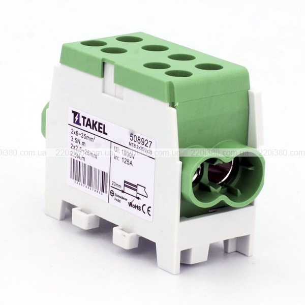 Клема розподільча MTB 2х35/2х25 з подвійною фіксацією, зелений TAKEL