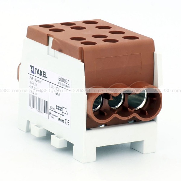 Клема розподільча MTB 2х35/4х25 з подвійною фіксацією, коричневий TAKEL