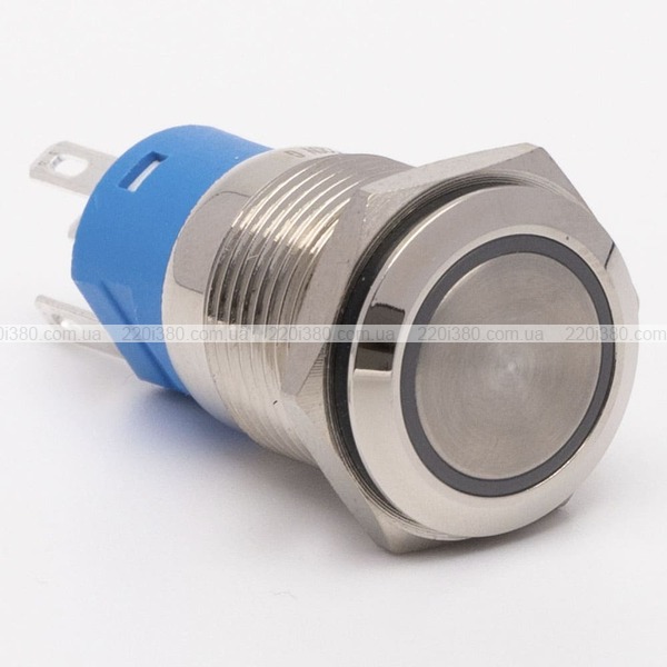 Кнопка металева КНМ-16-FJ-E 220V 1NO1NC плоска, блакитний TAKEL