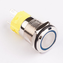 Кнопка металева КНМ-19-FJ-E-Z 220V 1NO1NC плоска з фіксацією, блакитний TAKEL