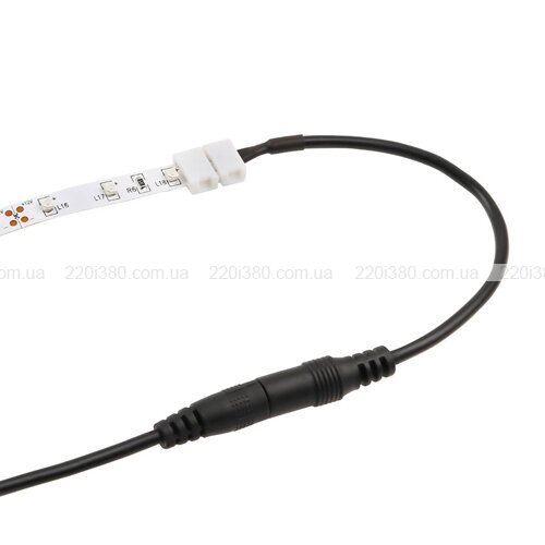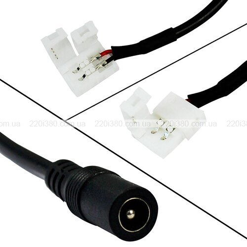 Даний провідний конектор призначений для приєднання світлодіодних стрічок до вузлів живлення або відповідним конекторів. Він складається з затискача, відхідного дроту та штекера miniJack «мама». Ширина затискача – 10 мм, довжина усього виробу – 15 см.