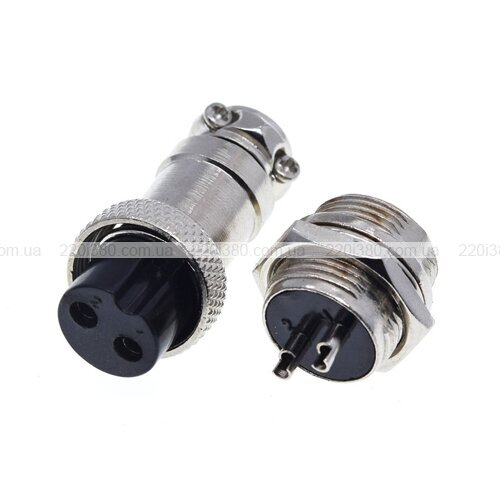 Даний металевий конектор призначений для з'єднання двох відрізків світлодіодних стрічок. Він складається з двох контактів 2pin – «тато» і «мама». Виріб має круглий перетин і з'єднується за допомогою різьби.