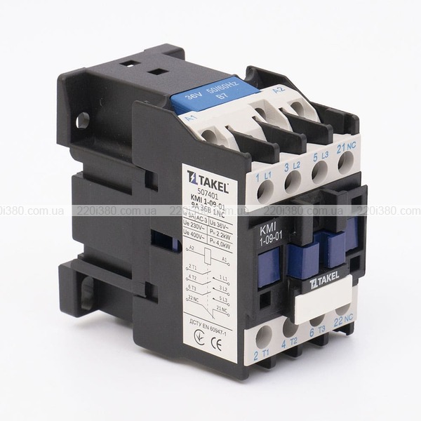 | Найменування скорочене: | Контактор КМІ 1-09-01 9А 36В 1 NC |