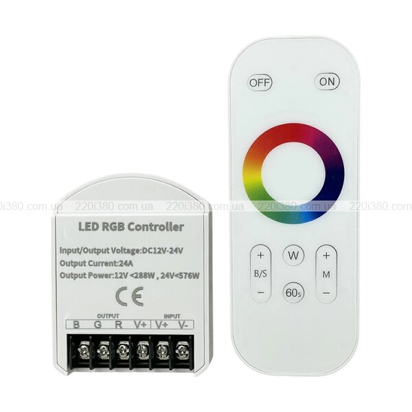 Контролер RGB OEM C-24-RF8-T-W – Використовується для керування кольоровою гамою, яскравісттю RGB-стрічками з живленням 12-24V.
