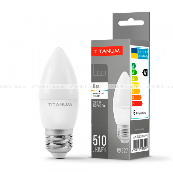 LED лампа TITANUM C37 6W E27 4100K - високотехнологічне джерело світла. Забезпечує рівний світловий потік і максимальну потужність з першої секунди роботи. Призначена для загального освітлення приміщень, торговельних залів і вітрин, промислових підприємств. Ідеальна для декоративного, місцевого і направленного освітлення. Використовується у всіх типах побутових світильників. Має тривалий термін експлуатації і високу стійкість до навантажень під час вмикання і вимикання.