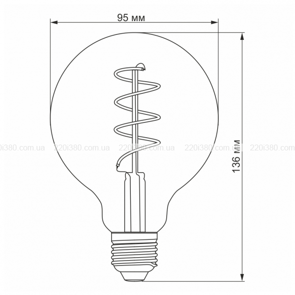 LED лампа VIDEX Filament G95FASD 5W E27 2200K дімерна бронза