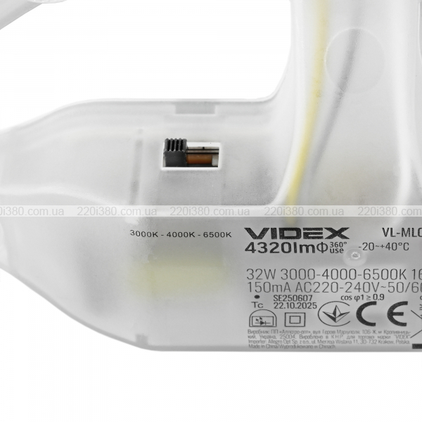 LED модуль для світильників VIDEX VL-MLC-32C призначений в якості замінного джерела світла для стельових світильників. У разі поломки світильника достатньо вмонтувати модуль в світильник. Кріплення відбувається за допомогою магніту і не потрібно витрачати час на повторний монтаж нового світильника. УВАГА! Умонтований світлодіодний модуль не призначений для монтування зовні світильника або з відкритим чи пошкодженим розсіювачем. В комплект разом зі світлодіодним модулем входять клемна колодка, інструкція користувача та індивідуальна упаковка.