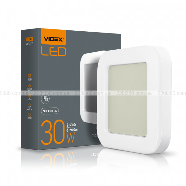 LED світильник ART IP65 квадратний VIDEX 30W 5000K - високо-технологічне джерело світла. Призначений для використання в промисловому секторі, муніципальних ЖКГ об'єктах і присадибних ділянках. Служить для освітлення під'їзних площ, сходових клітин, гаражів, складських та інших приміщень з підвищеним рівнем вологості і пилу. Має високий ступінь стійкості до зовнішнього впливу, широкий діапазон робочої температури і напруги. Після монтажу не вимагає обслуговування на протязі всього періоду експлуатації. Його розміри становлять усього 320x320x50мм.