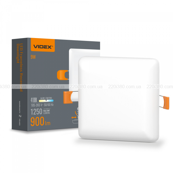 Світильник вбудований VIDEX - є джерелом більш якісного освітлення і споживає набагато менше електроенергії. Він не нагрівається і тому прекрасно поєднується з підвісними або натяжними стелями, а монтаж не викличе труднощів навіть у непрофесіонала. Мають сучасний дизайн. Всі світильники відрізняються своєю екологічністю. Регульований механізм кріплення забезпечує максимальну зручність при монтажі світильника. Світильники поставляються у зібраному вигляді, разом зі скобами кріплення. Готові до встановлення прямо з упаковки. До комплекту додається клемна колодка. Його розміри становлять усього 91x91x20мм. Після монтажу не вимагає обслуговування протягом всього періоду експлуатації.