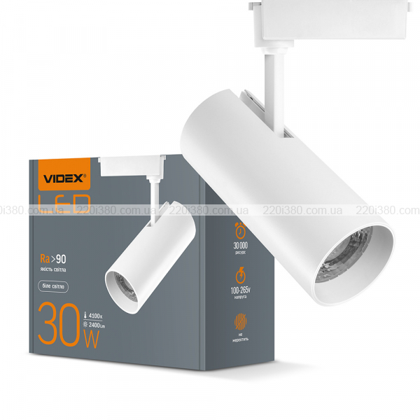 Особливістю трекових світильників VIDEX є високий показник індексу передачі кольору. Максимально чітке відображення природних кольорів предметів, які висвітлюються даними світильниками. Колірна температура - 4100К (біле світло). Кут розсіювання світла - 36°.