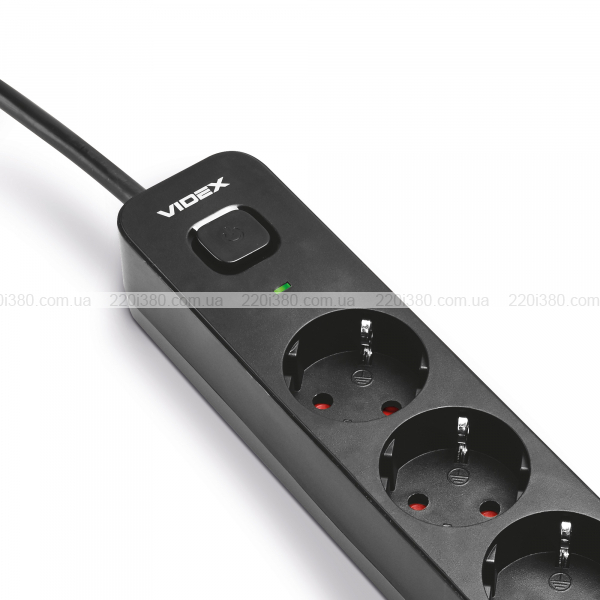 Мережевий подовжувач VIDEX ONCORD з/з 4п 3м (3x1.5мм) з кнопкою Black