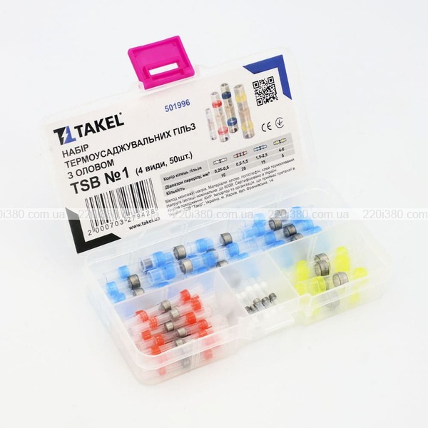 Набір термоусаджувальних гільз з оловом TSB №1 (4 види, 50шт) TAKEL