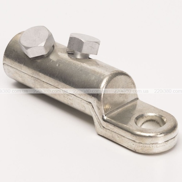 Тип наконечника: наконечники з відривними болтами для силового кабелю.Призначення: для окінцювання алюмінієвих проводів і кабелю, незалежно від їх геометрії і класу гнучкості.Матеріал: алюміній.Покриття: лудіння.Метод монтажу: заґвинчування болтів з відривними головками за допомогою ключів.Одиниця виміру: штука.Застосовуються як для одножильних так і для гнучких багатодротяних проводів.Підходять як для жил круглих в перерізі, так і для секторних жил.Мають захисне покриття (лудіння).Є мультирозмірними.Поєднання мультирозмірності і великої площі контакту досягається за рахунок внутрішніх уставок.Наконечники містять контактну пасту.Конструкція болтів розрахована для відриву головок при досягненні зусилля, що забезпечує надійну фіксацію наконечника на жилі.Розташування болтів в наконечнику зі зміщенням їх осей один до одного.Отвір для кабелю має центрально-симетричне розташування.На внутрішній поверхні хвостовиків є поперечна насічка.Контактна площинка зміщена нижче центральної осі наконечника.