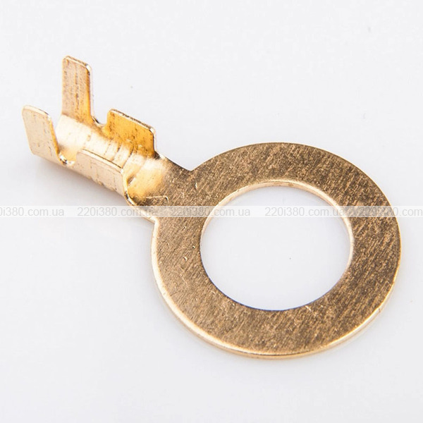 Тип наконечника: кільцевий без ізоляції розрізний.Призначення: для окінцювання багатодротяних провідників і приєднання їх до пристроїв, що мають контактні групи з болтами (гвинтами).Сертифікація в Україні: добровільна сертифікація згідно вимог ДСТУ EN 60947-1.Метод монтажу: обпресовування.Температура експлуатації: від -40 до + 90 С°.Напруга номінальна: 400В.Неізольовані кільцеві наконечники (в порівнянні з ізольованими) можуть застосовуватися в більш широкому діапазоні температур, як знижених, так і підвищених.Двоконтурне обпресовування наконечників. Наконечник латунний розрізний в хвостовій частині має два контури з різним рівнем висоти прапорців. В контур з низьким рівнем вводиться зачищена ділянка проводу, а в контур з високим рівнем провід з ізоляцією.Наконечники прапорцеві (розрізні) мають підвищені вимоги до правильного підбору «складових коректного обпресування» (тип і розмір матриці інструменту, реальні розміри проводу і наконечника).Матриці інструменту для латунних наконечників мають двоконтурну конструкцію і односторонню спрямованість. Завжди потрібно дотримуватися спрямованості і поєднувати різні за рівнем контури хвостової частини наконечника і матриці інструменту.