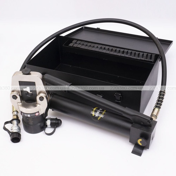 Інструмент для мідних і алюмінієвих наконечників і гільз з пресом виносний від насоса (для зручності монтажу) зі шлангом високого тиску. Рекомендується вибирати матриці за фактичним розміром, а не за номіналом.