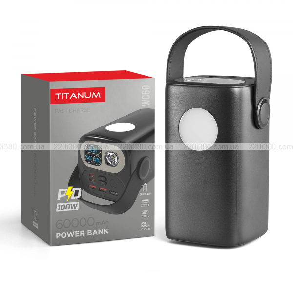 Павербанк 60000mAh TITANUM WC60 PD100W Black