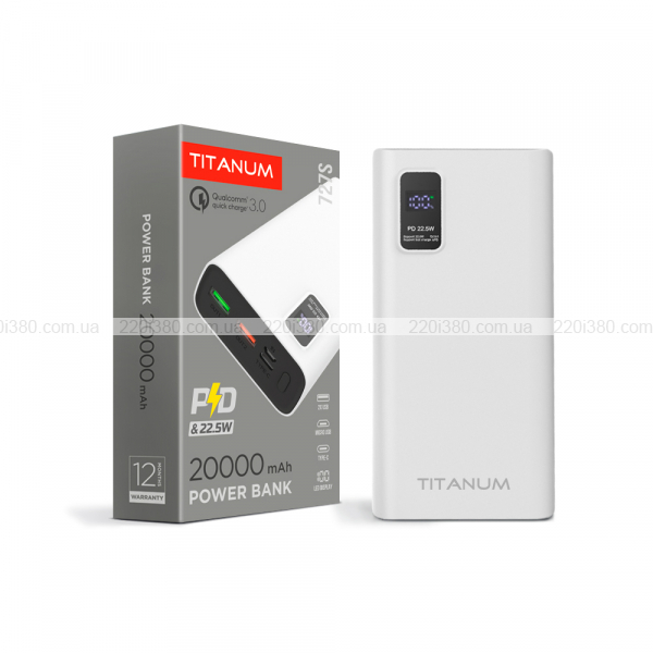 Павербанк TITANUM 727S 20000mAh 22.5W White
