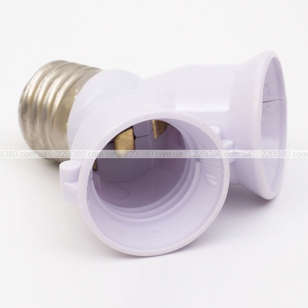 | Найменування скорочене: | Перехідник пластиковий Е27-2Е27, білий |
