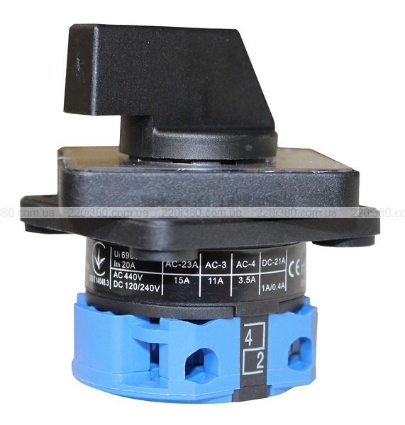 Перемикач кулачковий ПКП20-11/В 20А "0-1" 1Р/400B 60° 48х48