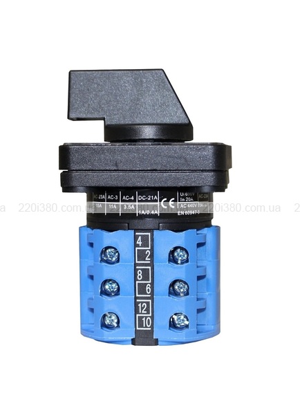 Перемикач кулачковий ПКП20-33/В 20А "1-0-2" 3Р/400B 60° 48х48 товарного знаку Techno Systems - призначений для використання у електричних ланцюгах змінного струму напругою до 400 В.
