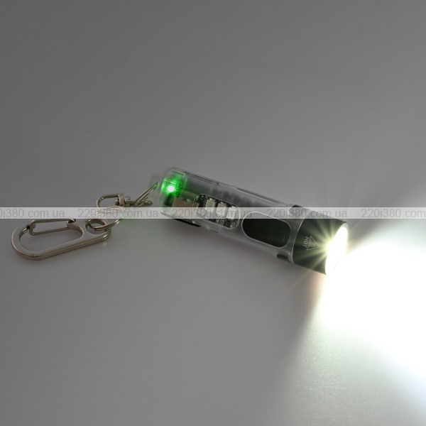 Доступне заряджання за допомогою кабелю USB-C. Ліхтарик заряджається доволі швидко – приблизно за 45 хвилин. В якості елементів живлення використовується вбудований акумулятор Li-Pol типу 601045.