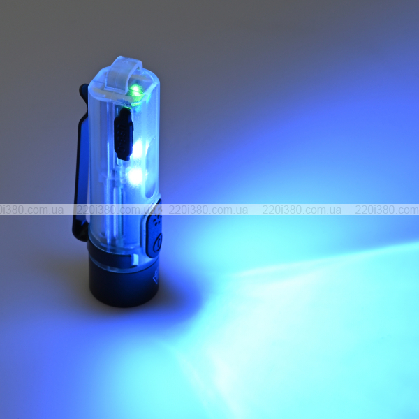 Крім білого світла, у ліхтаря є червоне світло та ультрафіолетове. Завдяки наявності 5-ти режимів роботи, червоного і ультрафіолетового світла, класу захисту від пилу та вологи (IP66) та класу захисту від падіння до 2м він має велику кількість сценаріїв для використання. Доволі швидко заряджається – приблизно за 45 хвилин.