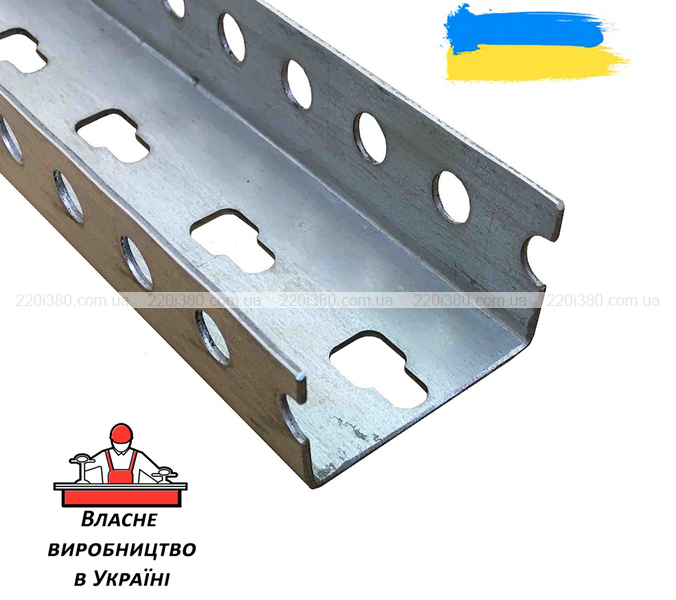 Профіль 1,2-3000мм, П-подібний 47х26мм, перфорований, оцинкований - призначенний для монтажу систем для прокладання кабелю та створення опорних конструкцій.