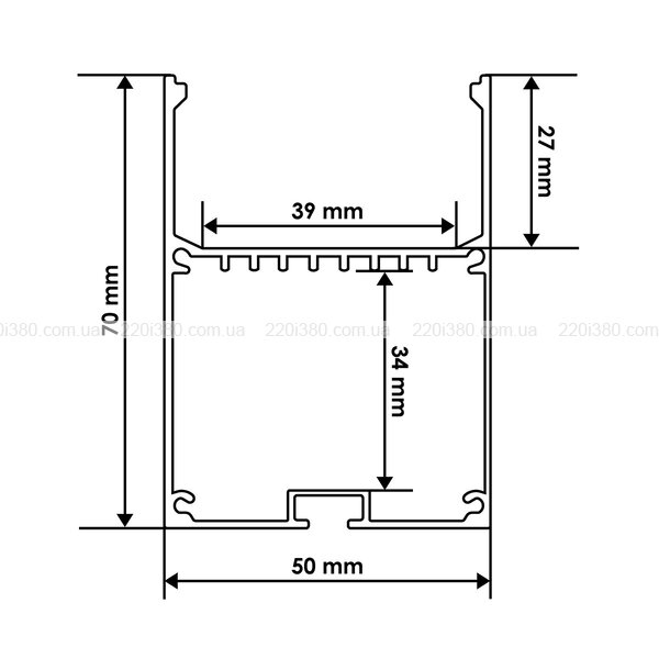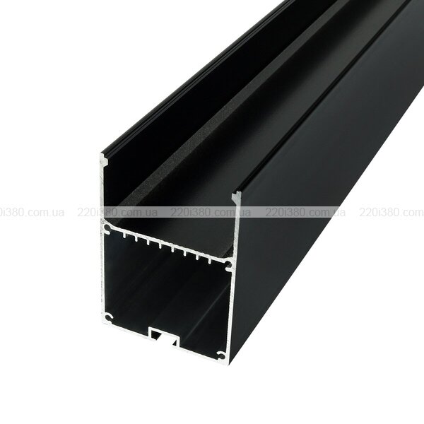 Даний двох'ярусний алюмінієвий профіль для світлодіодних стрічок має розміри 50х70 мм. Виріб являє собою прямий відрізок довжиною 2 метри. Профіль забарвлений у чорний колір і має анодоване покриття, що покращує його експлуатаційні характеристики. Для цієї моделі передбачається накладний монтаж.