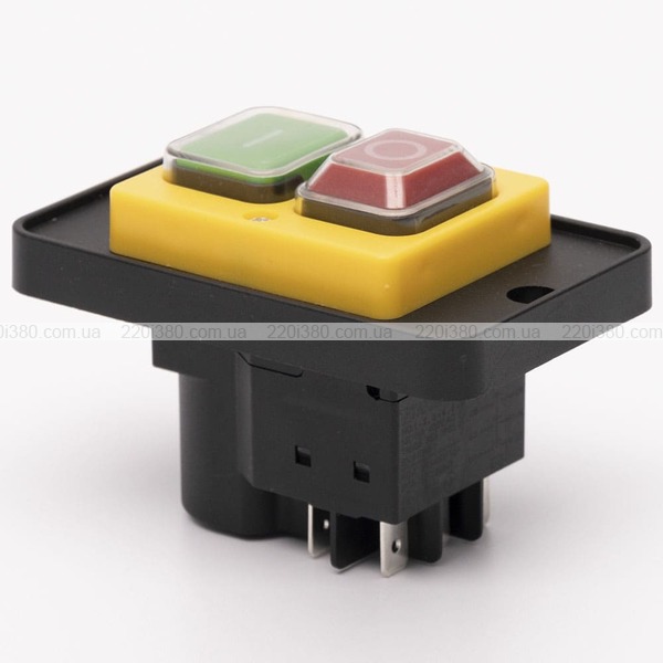 Пускова електромагнітна кнопка ESSB-161YC 6pin на панелі, жовта рамка