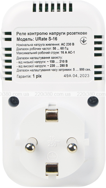 Реле контролю напруги розеткове URate S-16 AC 230V 16A