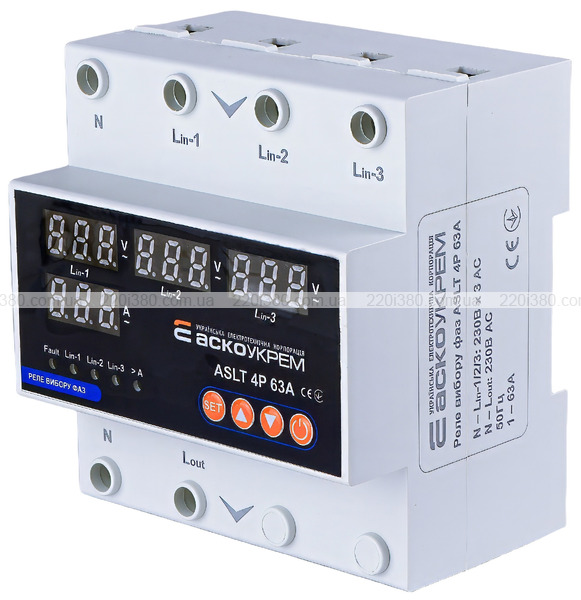 Особливості: Має як автоматичний, так і ручний режими вибору фаз; автоматичний режим здійснює вибір однієї із трьох фаз за їх наперед виставленим пріоритетом; монтується на DІN-рейку 35 мм; формфактор: 5 модулів (90 мм);