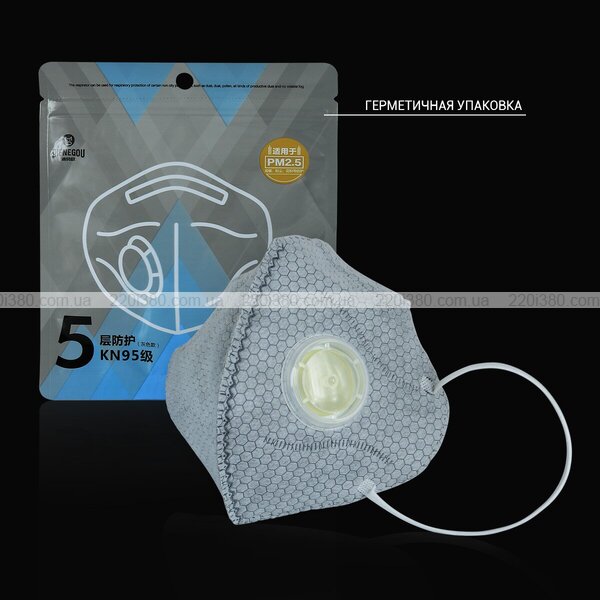 Респіратор KN95 PM2.5 G FFP2 6 шарів, сірий