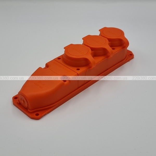 Розетка каучукова тримісна RSO помаранчева 2Р+РЕ IP44 TAKEL