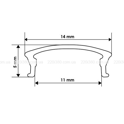 Цей розсіювач для алюмінієвого профілю має дугоподібну форму. Габарити виробу – 5х14 мм. Корпус моделі матовий, виготовлений з полікарбонату.