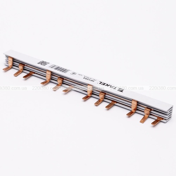 Тип шин: злучна штирова (Pin) мідна, відводжувані контакти якої виконані у формі плоских шпинів. Призначення: для надійного і зручного послідовного підключення автоматичних вимикачів та інших модульних електротехнічних пристроїв, а також для виготовлення перекладок між модульними пристроями. Робочі температури: від -40 до +50 °С. Короткочасно до +70 °С. Номінальна напруга: 400 В. Номінальна напруга ізоляції: 600 В. Крок контактів: 18мм. Сертифікація в Україні: добровільна сертифікація (не підлягає обов'язковому декларуванню) згідно вимог ДСТУ EN 60947-1:2017.